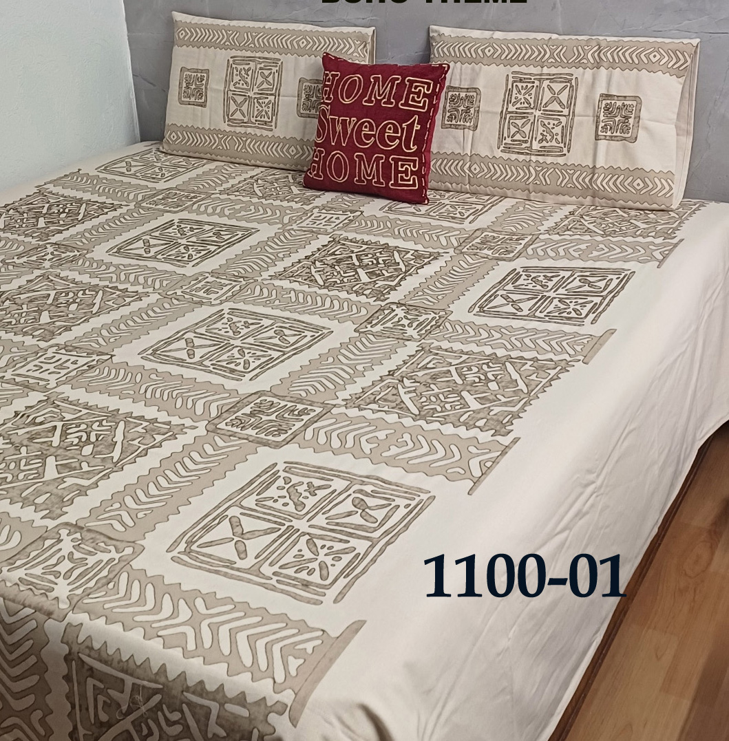 100% COTTON BED COVER WITH 02 PILLOW COVERS